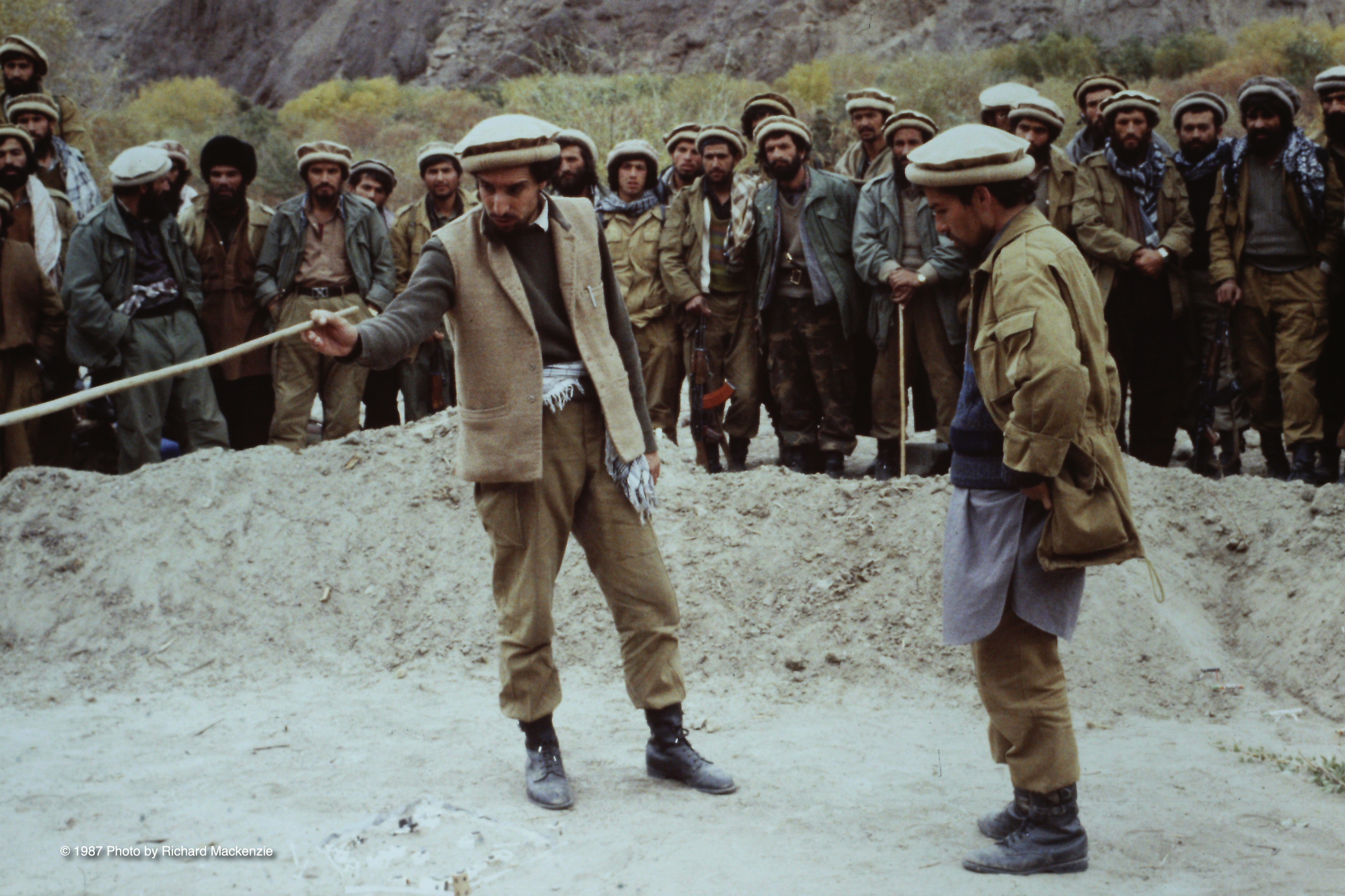 We trek for a few hours until we reach our destination: a flat stretch of sand along the Kochka, an area known as Jengal.  As hundreds of mujahideen continue to approach from different directions, we look forward in awe at what lies in front us — a massive sprawling, hand-made model of nearby Communist bases carved from sand.