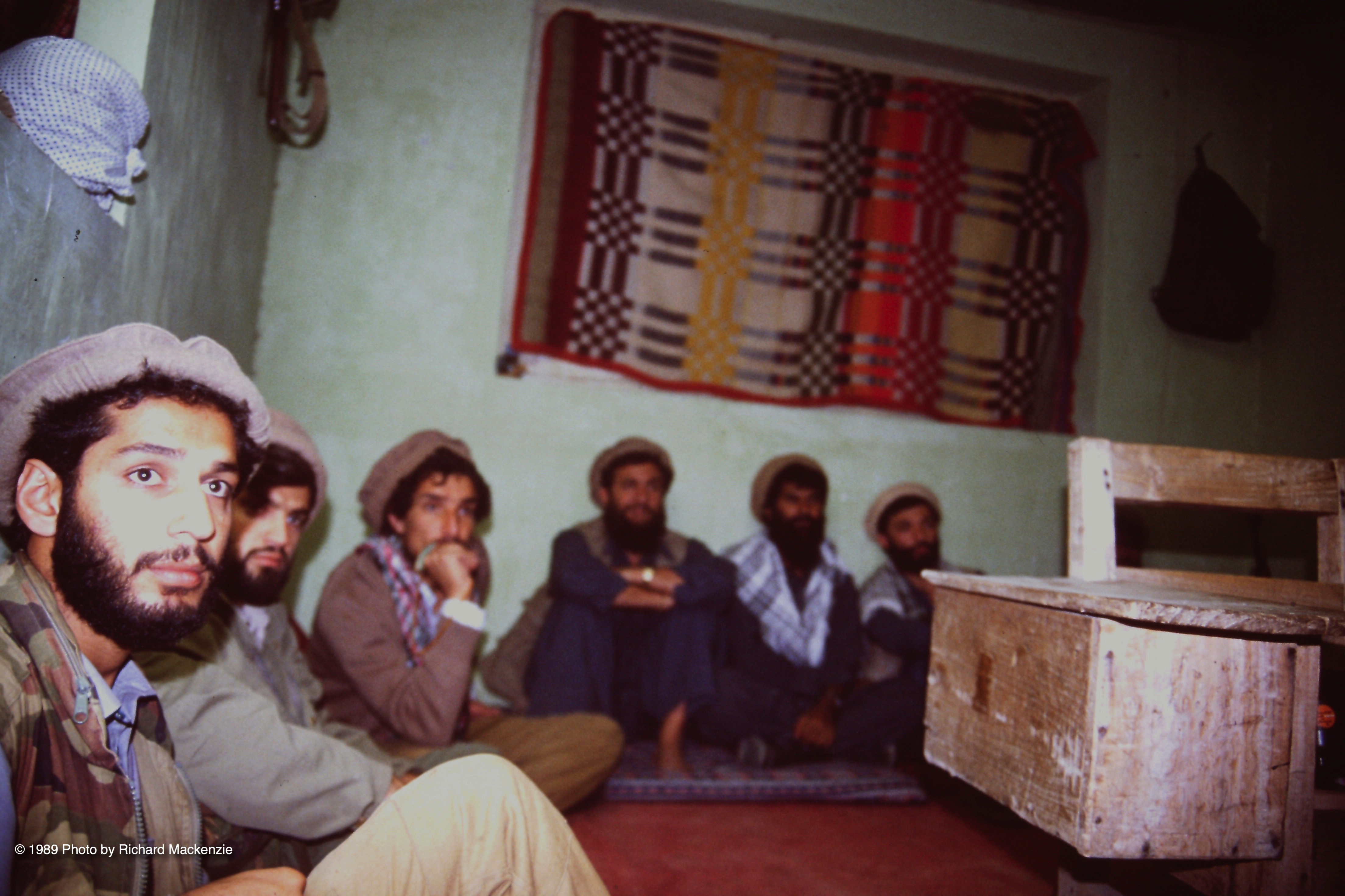 Haron (left) sitting with Massoud and mujahideen for briefing.